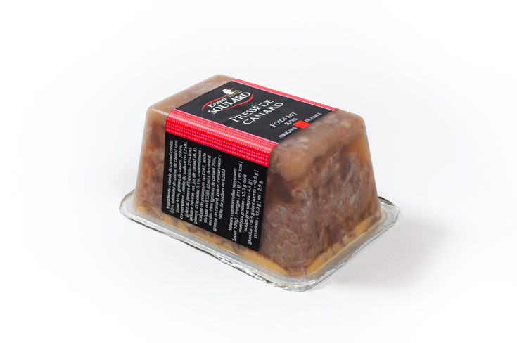 Au goût onctueux, le pressé de canard est riche en viande, longuement mijotée. C'est un concentré de saveurs qui garantit son authenticité. Il provient uniquement des canards Ernest Soulard élevés en plein air en Vendée.
